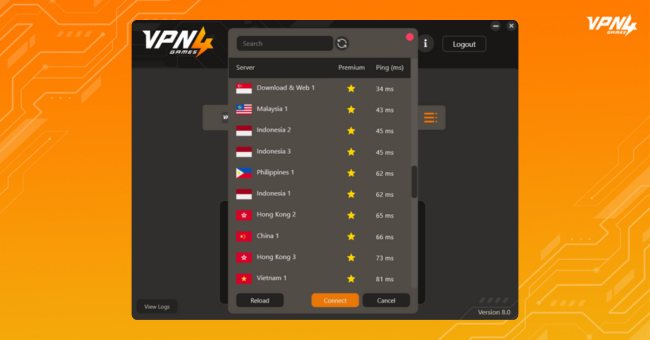 VPN4Games has VPN servers for gaming, reducing lag and ping, playing games on foreign servers, enjoying online games smoothly without interruption, and supports over 100 servers in 20 countries worldwide.