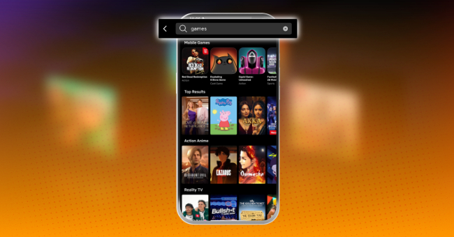 2.Select to type "game" in the search bar (top right corner) or scroll down to see recommendations for "mobile games."