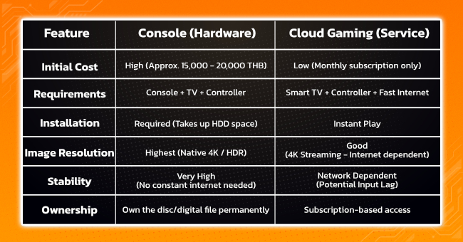 ความสะดวก: ระบบ Cloud ของ Microsoft พัฒนาไปไกลจนอาการหน่วง (Latency) แทบเป็นศูนย์ รองรับการเซฟเกมแบบข้ามเครื่อง (Cross-save) ที่ทำให้คุณเล่นค้างจากคอมพิวเตอร์มาต่อบนทีวีได้ทันที