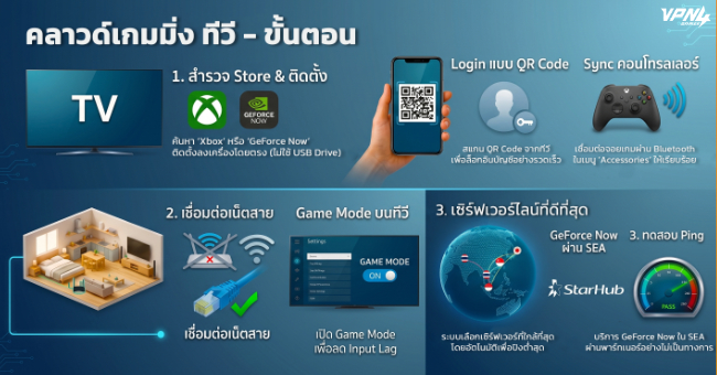 หากคุณต้องการสัมผัสประสบการณ์ Cloud Gaming แบบไร้รอยต่อ การใช้ VPN4Games ควบคู่ไปกับการต่อสาย LAN จะเป็นสูตรสำเร็จที่ทำให้การเล่นเกมบนระบบ Cloud ของคุณสมบูรณ์แบบที่สุด ไม่ว่าจะเป็นบน Gaming Laptop, PC หรือ Smart TV ของคุณ