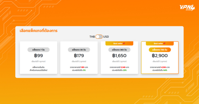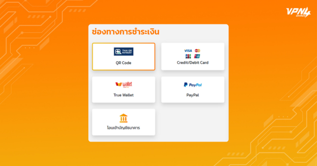สามารถเลือกซื้อแพ็กเกจ VPN4Games ได้ที่: https://www.vpn4games.com/th/payment